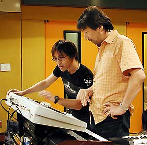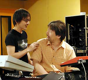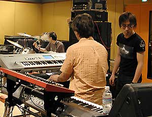 コンサート・ステージでも常に坂下さんの後方に・・・ シンセなど音色作りのアシスタントもこなす三浦さん